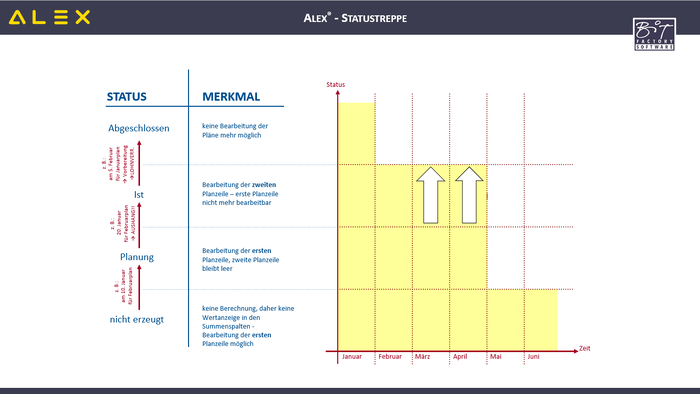 So kann es nicht vorkommen, dass der Januar noch in Planung ist und der Februar bereits im Status IST.