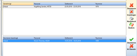 Hier ist nun im Genehmigungsverfahren sichtbar, dass der Urlaub zum Stornieren beantragt wurde: