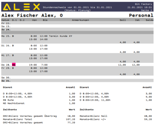 - Stundennachweise nur mit angerechneten Zeiten (laut §26_Abs._1_AZG) drucken