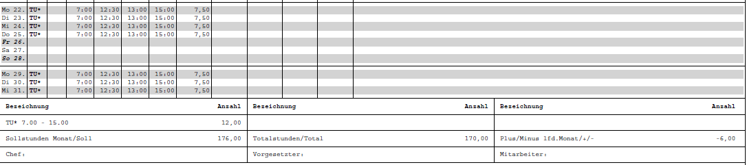 Auf dieser Seite wird ein altes Format des Stundennachweises (bis 2019) beschrieben, die Doku zum aktuellen Format finden Sie hier: