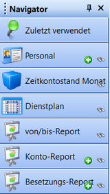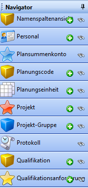 Im Navigator steht bei allen Programmpunkten, bei denen eine Neuanlage möglich ist ein grünes Plus“ = Neu Anlegen zur Verfügung.