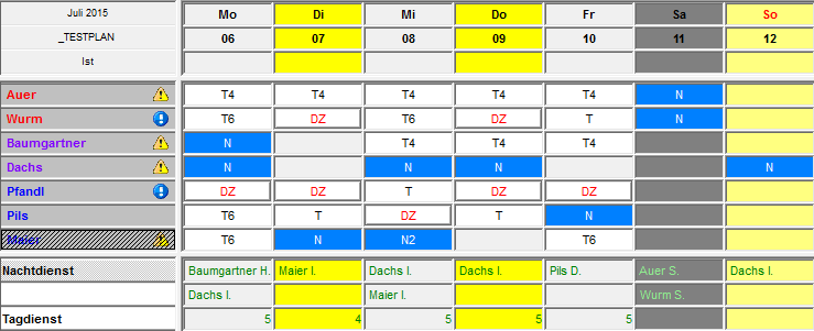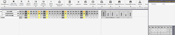 Der Jahresplan des Mitarbeiters kann jederzeit über den Dienstplan geöffnet werden.