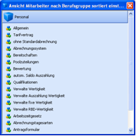 Durch Klick auf das Auswahlsymbol werden alle zur Verfügung stehenden Ansichten angezeigt. Am Beispiel Personalstamm sind das