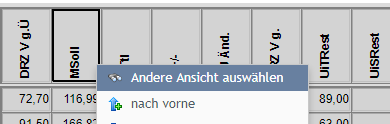 Die Bezeichnung kann durch Klick mit der rechten Maustaste auf eine beliebige Zeitkontobezeichnung in der Summenansicht im Dienstplan „Ansicht umbenennen“ geändert werden .