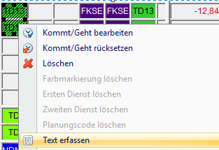 • Rechtsklick auf den Tag im Dienstplan, an welchem der Text erfasst werden soll --> "Text erfassen"