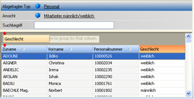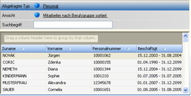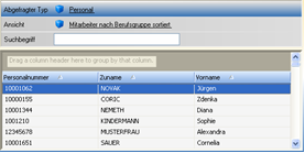 Alle vom Programm vorgegebenen Ansichten werden nach den dargestellten Feldern bezeichnet. Die abgebildete Ansicht liefert somit als Ergebnis je Mitarbeiter