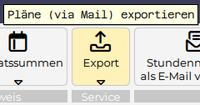 • Im Dienstplan mit einem Klick auf den Exportpfeil in der Werkzeugleiste (Pläne (via Email) exportieren) -> hier öffnet sich automatisch das konfigurierte Emailprogramm mit einer Textvorlage zum Versand des Exports