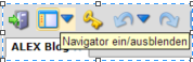 Der Navigator ist nicht sichtbar. Der Arbeitsbereich schließt ganz links an. Durch Klick auf das Navigator-Symbol im Systemmenü wird der Navigator wieder angezeigt.