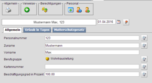 Es öffnet sich die Stammdatenmaske für die Personalanlage.
