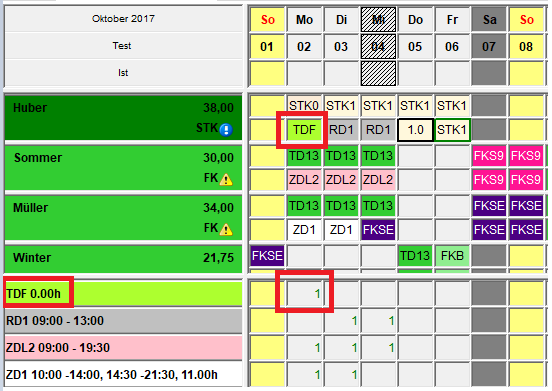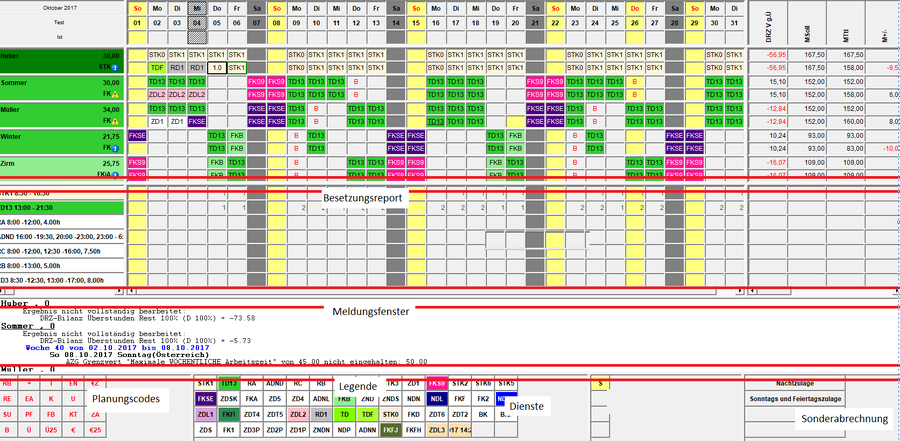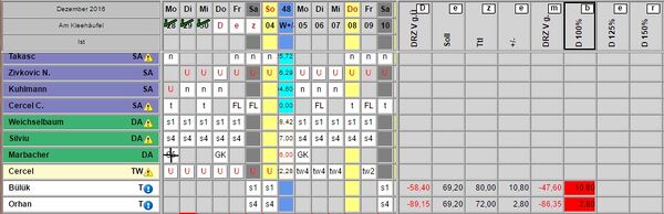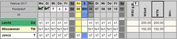 Wenn Sie dies nicht machen, können Sie zwar Dienste und Abwesenheiten im Plan eintragen, es erfolgt aber keine Berechnung (Summen sind leer)!