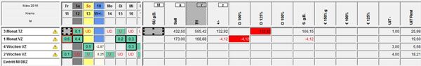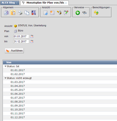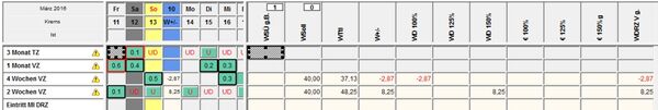 Nicht erzeugt: Pläne, die noch nicht erzeugt wurden. (ALEX rechnet noch keine Summen, außer Urlaub)