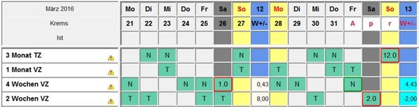 Abrechnung (alle 4 bzw. 13 Wochen) - Schichtarbeiter/Durchrechnungsarbeiter