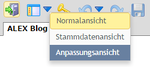 Navigator ein/ausblenden und Ansicht wechseln(Normalansicht, Stammdatenansicht, Anpassungsansicht)