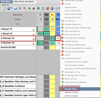• Im Monatsplan, Rechtsklick auf den Mitarbeiter
