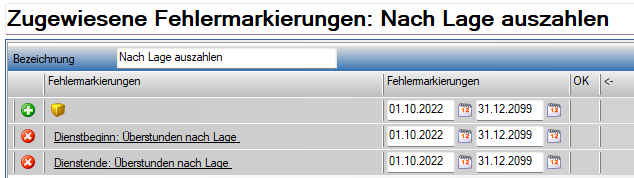 Beispiel: Bearbeitung der Markierung mit dem Planungscode "Überstunden auszahlen nach Lage" beginnend mit dem Dienstbeginn.