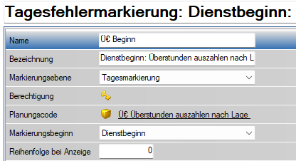 Damit diese Funktion aktiviert wird, müssen die Tagesfehlermarkierungen beim betreffenden Planungscode über das Kontextmenü erstellt werden.