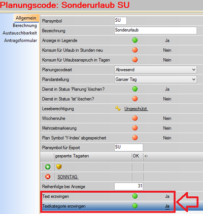 Es ist möglich, einen Text und/oder eine Textkategorie bei Eintragung eines Planungscodes zu erzwingen.