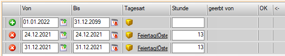 So kann z.B. definiert werden, dass am 24.12. ab 13:00 ein Feiertag beginnt: