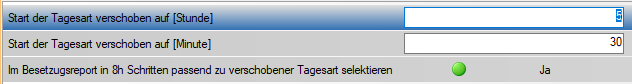 Für die Definition der verschobenen Tagesart gibt es 2 Parameter (Gruppe "Verschobene Tagesart"):