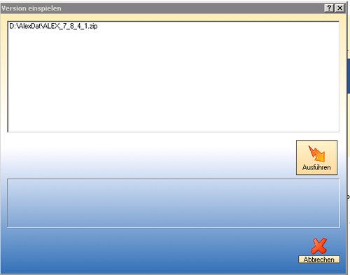 Mit einem Klick auf "Ausführen" wird die neue Version zum Einspielen vorbereitet. Beim nächsten ALEX-Dienst-Neustart wird diese Version ins System übernommen.