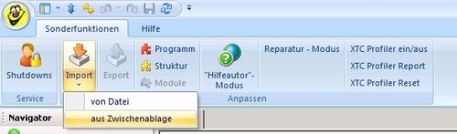 - b) in die Zwischenablage kopieren und unter "Sonderfunktionen" als Import einfügen.