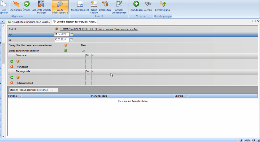 Mit dem von/bis-Report lassen sich bestimmte Planungscodes auswerten.