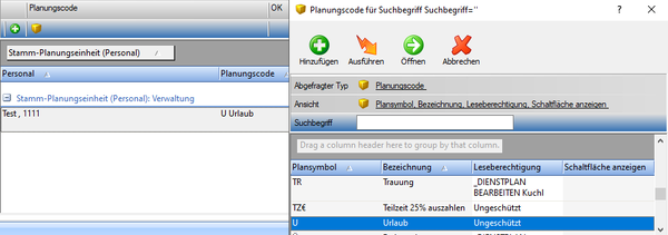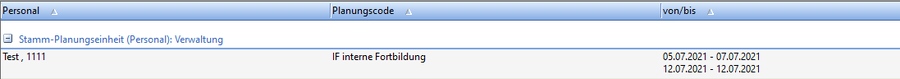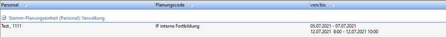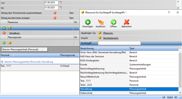 • Ressource (gelber Würfel - Systemeinstellungen, Bereich, Planungseinheit oder Personal - z.B. Mitarbeiter "Test, 1111")