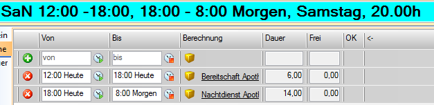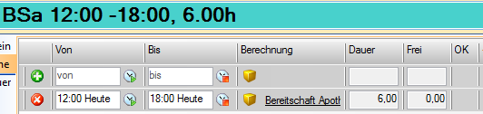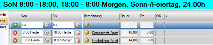 • Bereitschaft Apotheken: Schema "Bereitschaft" / Sollzeit vortragen: JA