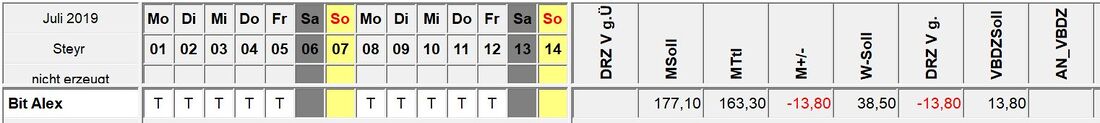 Beispiel: Vollzeit 38,5h, VB im Dienst 0,6h pro Tag --> Vorbereitungszeit im Dienst muss extra erfasst werden
