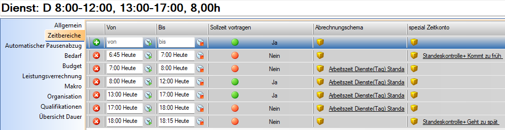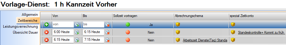 5.1.2.4 Vorlage-Dienst für die Gleitzeit vor dem Dienst[Bearbeiten | Quelltext bearbeiten]