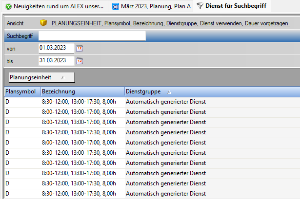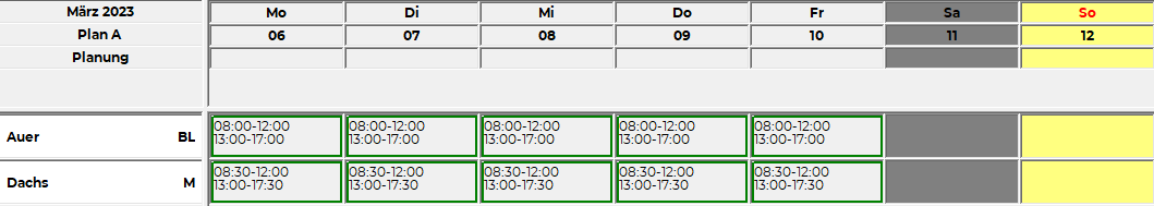 - Alle Dienste für Herrn Dachs (Dienste von 8:30 - 17:30) haben folgende Einstellung: