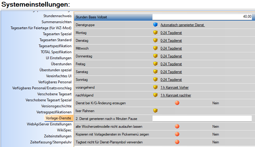 - Montag - Sonntag = "0-24 Tagdienst" (Vorlage-Dienst siehe unten)