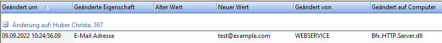 Damit Änderungen über die Webservice-Schnittstelle protokolliert werden, muss beim Parameter "Eigenschaften-Import: Benutzer für Webservice" ein Benutzer hinterlegt werden.