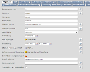 Diese Eigenschaften beeinflussen die Berechnung der Zeitkonten und dürfen sich auf abgeschlossenen Plänen nicht ändern.