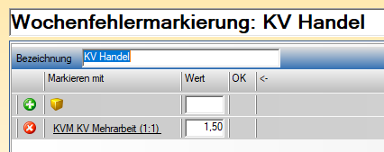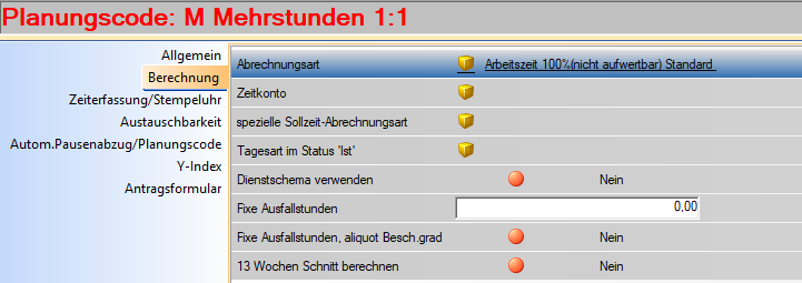 Hierzu kann ein eigener Planungscode für diese Mehrarbeit erstellt werden, der bei Markierung der Wochenüberstunden automatisch die Differenz zu den 40 Wochenstunden mit der Bewertung 1:1 belegt.