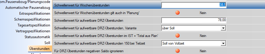 Basis der Berechnung der Wochenüberstunden, ist der Parameter "Schwellenwert für Wochenüberstunden". Dieser muss (Achtung Stichtag) auf 38,5 Stunden gesetzt werden.