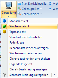Es gibt 3 verschiedene Ansichtsoptionen für den Dienstplan: