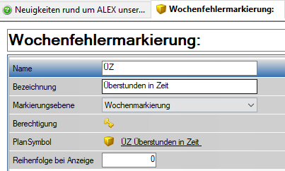 Damit diese Funktion aktiviert wird, müssen die Wochenfehlermarkierungen über den Navigatorpunkt "Wochenfehlermarkierung" erstellt werden.