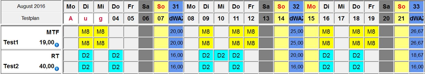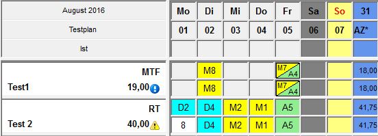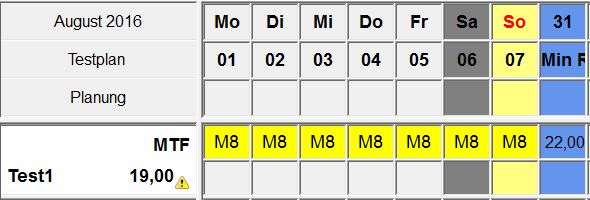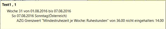 Im folgenden Beispiel werden dann Stunden angezeigt, wenn die Wochenruhezeit verletzt wird. Es wird angezeigt, um wie viele Stunden zu wenig Ruhezeit eingeplant ist.