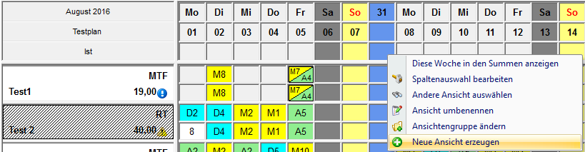 In der Kalenderzeile ist nun ein zusätzliches blaues Feld am Ende jeder Woche ersichtlich. Nun muss noch definiert werden, welche Wochensumme man sich anschauen möchte. Hierfür wird mit Rechtsklick auf das Wochensummenfeld eine neue Ansicht erstellt.