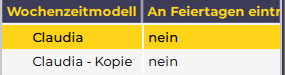 • Wochenzeitmodelle können im Status „IST“ kopiert werden!