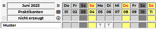 • Die zuvor manuell eingetragenen "T" Dienste werden nicht mit dem "V"-Dienst vom Wochenzeitmodell überschrieben: