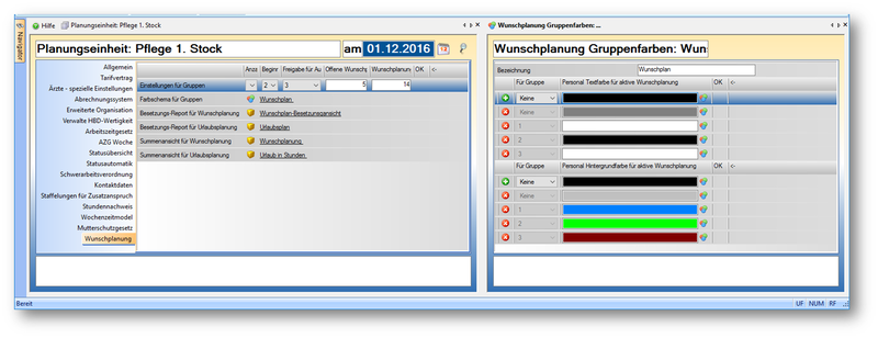 Diese Farbeinstellungen können in den Stammdaten der Planungseinheit jeweils im Register "Wunschplanung" vorgenommen werden: