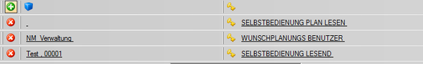 Achtung! Ein Wunschplanungsbenutzer ist nur beschränkt kompatibel mit schreibenden Selbstbedienungsrechten. Es ist möglich, dem Wunschplanungsbenutzer eine Rolle auf das eigene Personal mit Schreibrechten (z. B. Istzeiterfassung) zu geben. Aber momentan ist es damit dem Wunschplanungsbenutzer nur möglich, im Kommt/Geht-Fenster Änderungen einzutragen. Es gibt derzeit keine Möglichkeit, dass dem Wunschplanungsbenutzer außerhalb seiner Wunschplanungsphase (und gegebenenfalls der vorherigen Urlaubsplanungsphase) Dienste oder Planungscodes in der Legende angezeigt werden.