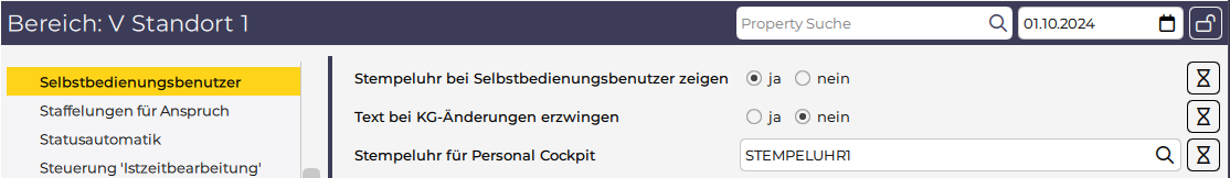 Hinterlegen der Stempeluhr am Bereich für die Personal Cockpit App