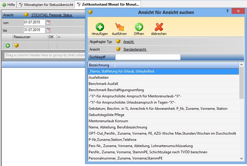 • Danach öffnet sich das neue Fenster, nun können die Werte mit linker Maustaste ausgewählt werden. Falls eine Büroklammer (siehe Beispiel Personal) erscheint, kann diese mit Rechts angeklickt werden, dann werden auch die weiteren Parameter angezeigt. Diese weiteren Parameter können wieder mit linker Maustaste ausgewählt und angehakt werden.