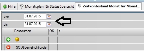 • Im Navigator finden Sie den Navigatorpunkt "Zeitkontostand Monat" - Mit Klick auf die Lupe öffnet sich der Report.